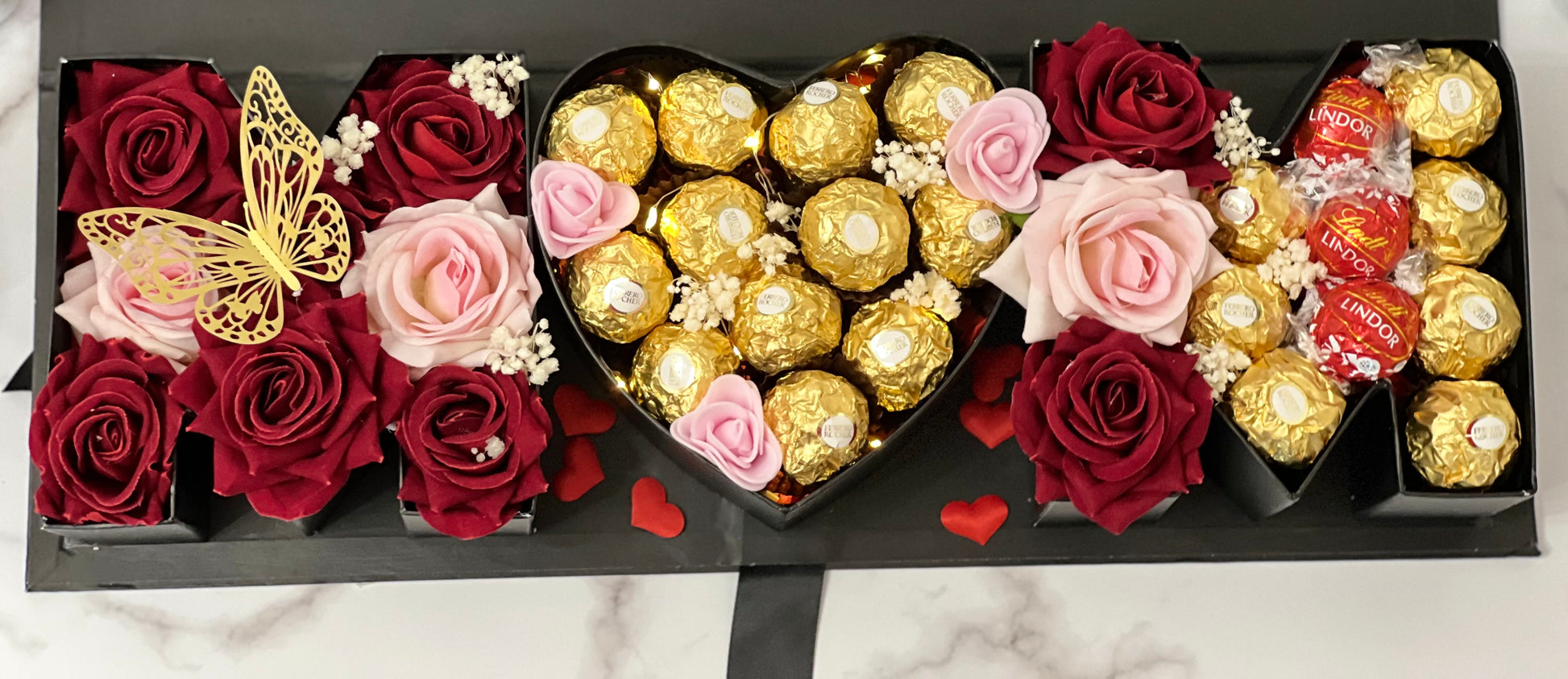 Sorprende a tu mamá con un regalo único y lleno de cariño. Nuestra Caja MOM está cuidadosamente diseñada para hacer de su día algo inolvidable. Cada caja incluye hermosas rosas frescas y chocolates delicadamente seleccionados, todo personalizado para ella. Esta caja no es solo un regalo, es una experiencia llena de emociones.